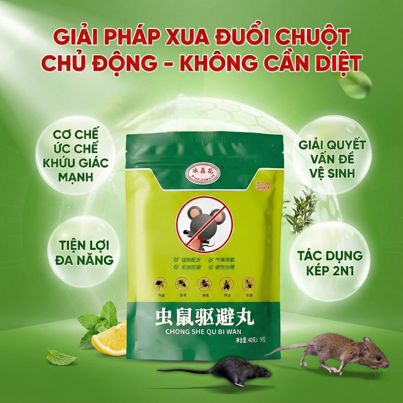 Viên Đuổi Chuột Thảo Mộc giải quyết triệt để vấn đề này bằng cơ chế "phòng thủ từ xa". Thay vì tiêu diệt tại chỗ, sản phẩm tỏa ra hương liệu mạnh làm mất phương hướng và gây khó chịu cực độ cho chuột, khiến chúng không thể làm tổ hay cắn phá và buộc phải di chuyển sang khu vực khác. Đây là phương án tối ưu để bảo vệ dây điện xe hơi và giữ gìn vệ sinh cho ngôi nhà mà không cần tốn công xử lý hậu quả.